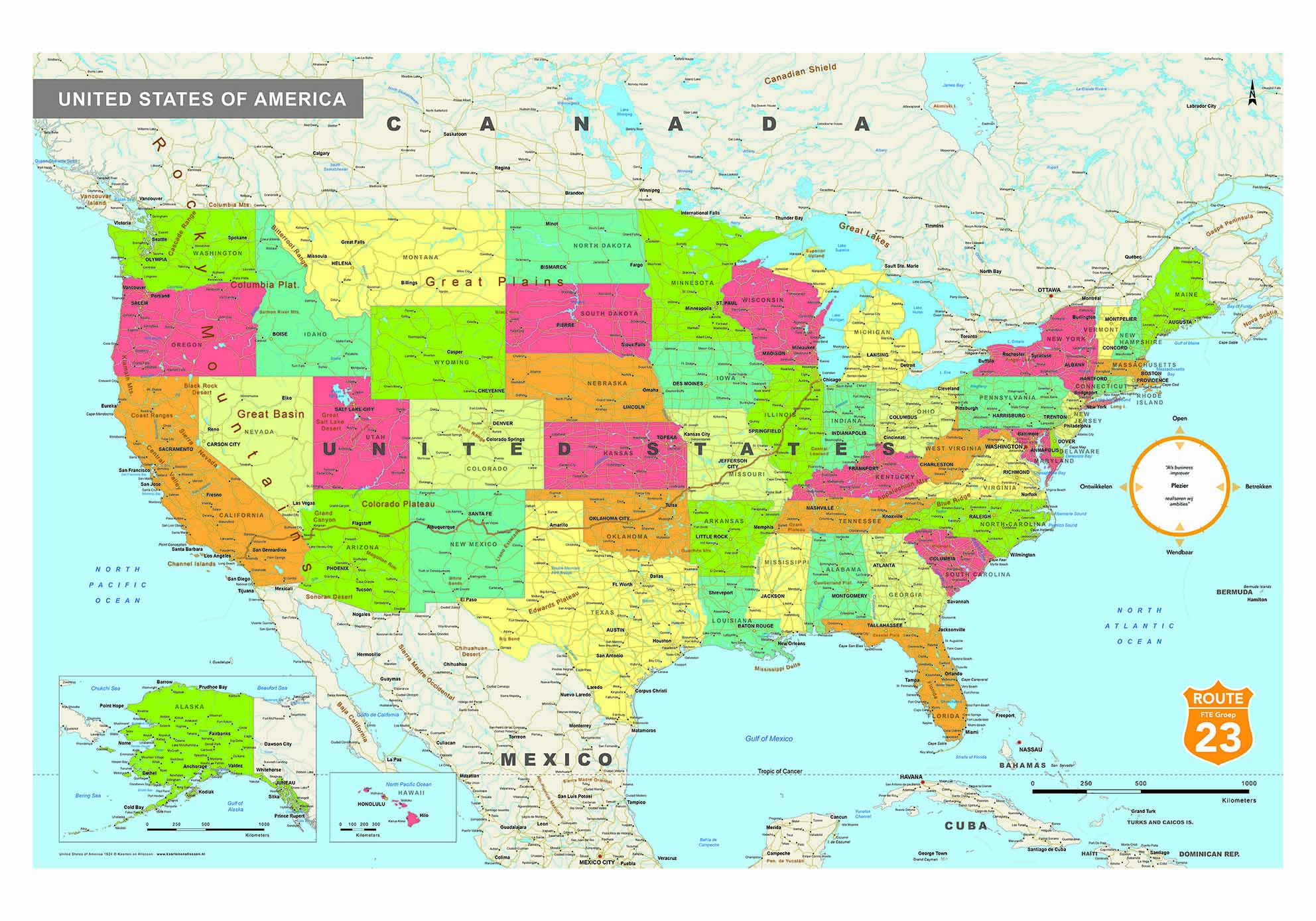 Dit zijn de ST en NT kaarten die iets extra of net anders zijn dan de standaard style. Zoals bij de USA is de route 23 er dikgedrukt op.